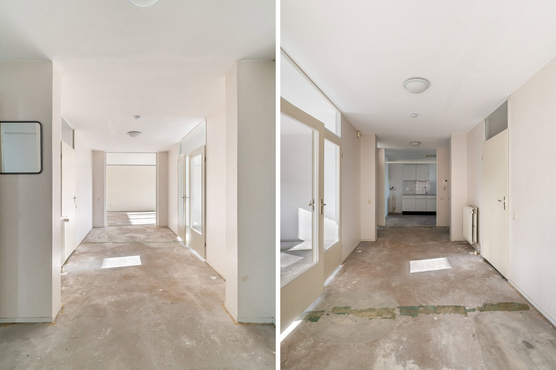 Via de gezamenlijke entree met bellentableau en brievenbussen bereik je met de lift of trap de derde verdieping. Je stapt binnen in een ruime hal, die toegang geeft tot alle vertrekken en meteen de lichte en open sfeer van de woning laat zien.