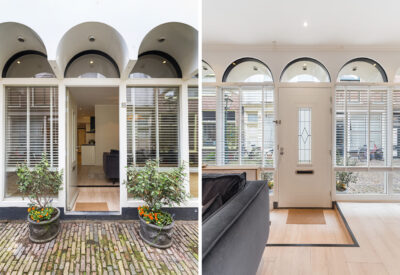 Wat deze woning direct onderscheidt, is de prachtige voorzijde met hoge ramen en karakteristieke rondbogen. Dit zorgt niet alleen voor veel lichtinval, maar geeft de woning ook een unieke en charmante uitstraling. Vanuit de woonkamer heb je zo ook leuk zicht op het straatje.