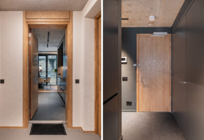 Afgesloten entree met video-intercom, brievenbussen, toegang tot de lift en het trappenhuis.