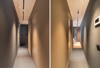 Het appartement heeft een woonoppervlakte van circa 50 m² en bestaat uit één open woonruimte, waarin wonen, koken, eten en slapen op een bijzonder slimme en stijlvolle manier samenkomen. De volledige afwerking is gerealiseerd onder ontwerp en toeziend oog van een binnenhuisarchitect. Dat zie je terug in elk detail: de maatwerk woon- en slaapwand in warm houtfineer, de strakke wandafwerking, de visgraat vloer, de zorgvuldig gekozen verlichting en de harmonieuze kleurstelling.