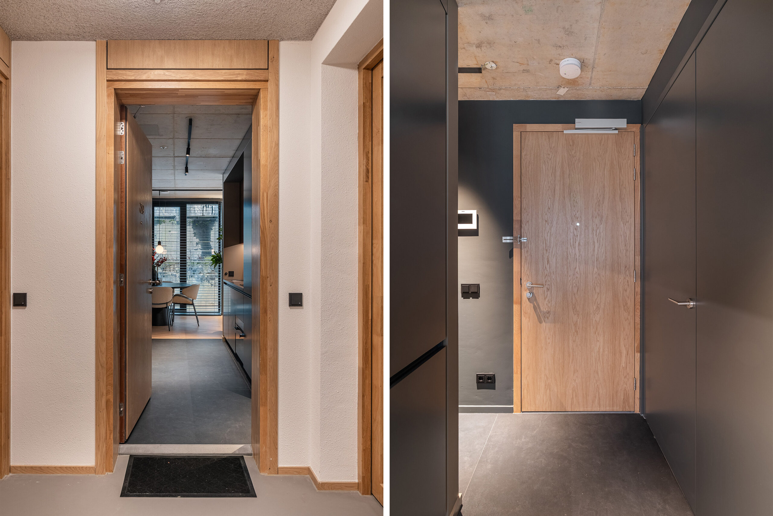 Binnenkomst in de hal met toegang tot de luxe open keuken. Vanuit de keuken loop je door naar de open woonruimte met zitgedeelte, eetgedeelte en slaapzone. De maatwerk wand scheidt de slaapruimte op een elegante manier af, zonder het loftgevoel te verliezen. Vanuit de woonruimte is het balkon bereikbaar.