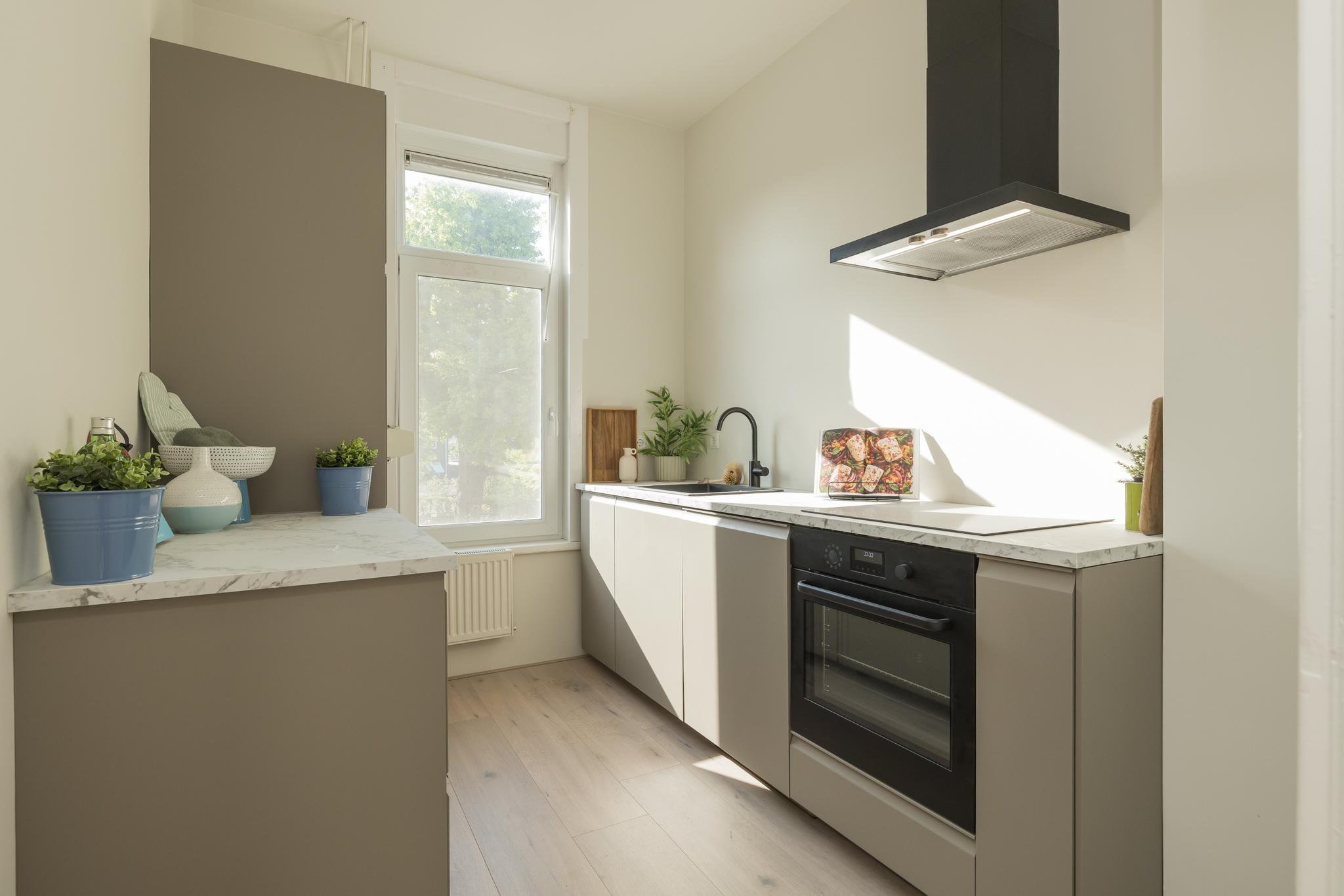 De gesloten keuken is in 2025 volledig vernieuwd en geplaatst in een rechte opstelling. Voorzien van alle gemakken en strak afgewerkt. De meterkast is hierbij ook vernieuwd. Het aparte toilet is modern uitgevoerd. Op de tweede verdieping bevindt zich een ruime, volledig betegelde badkamer met donkere vloertegels, lichte wandtegels, een douche, wastafel, tweede toilet, handdoekradiator en een praktische opstelplaats voor je wasmachine en droger.