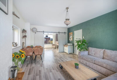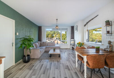 De woonkamer springt direct in het oog: bijna 6 meter diep, bijna 4 meter breed en dankzij de hoekligging extra licht door het zijraam. Hier is ruimte genoeg voor zowel een zithoek als een grote eettafel.