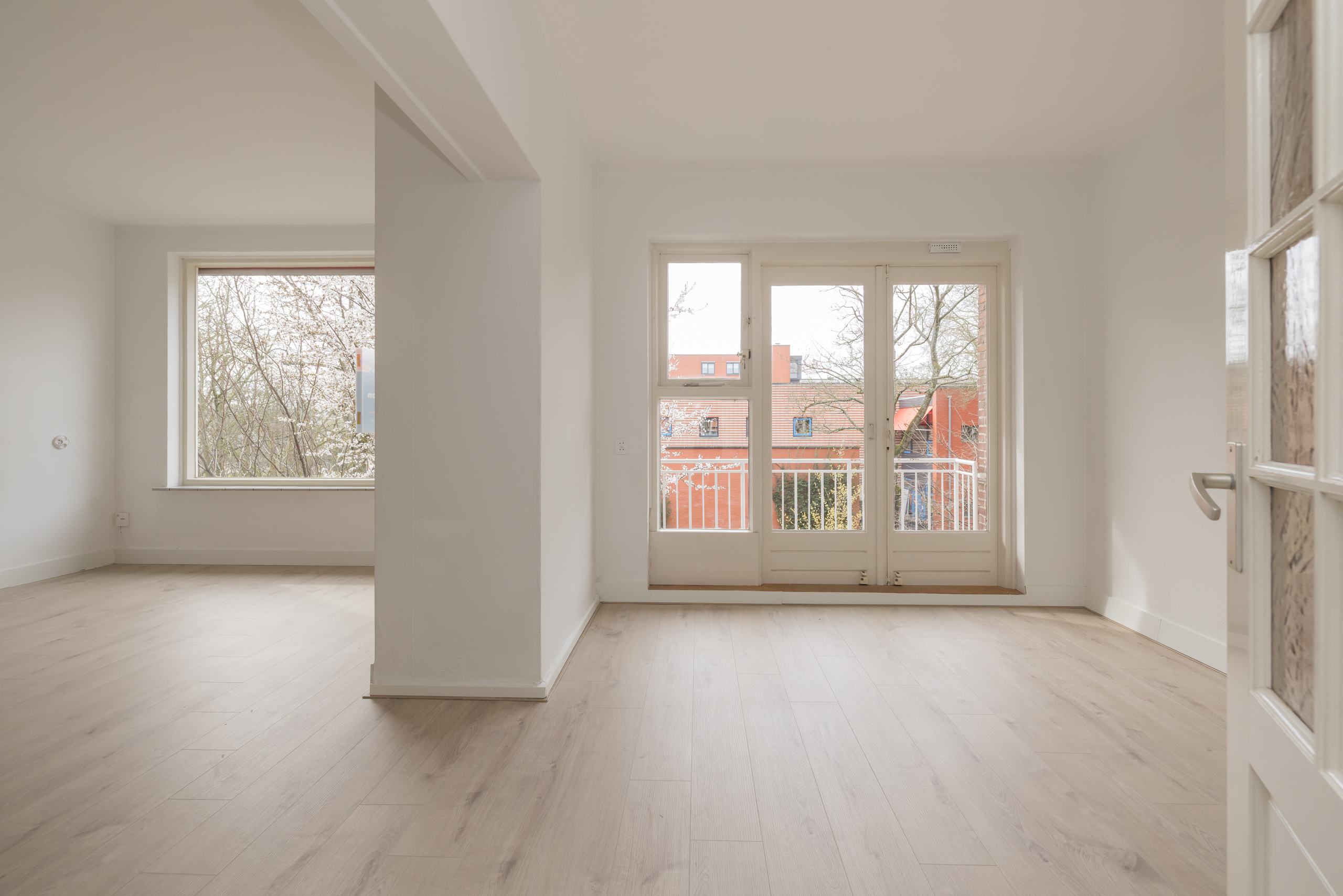 Het appartement beschikt over twee ruime slaapkamers. Door de oorspronkelijke indeling van het appartement is het mogelijk om hier een derde slaapkamer of werkruimte te realiseren.