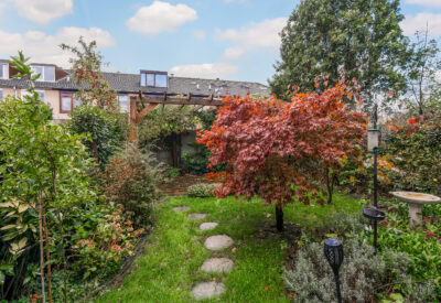 De achtertuin ligt op het zuidwesten en is zorgvuldig aangelegd.