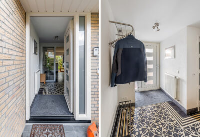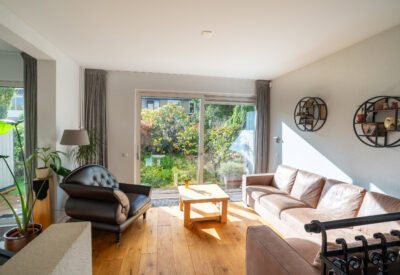 Je komt binnen in een ruime hal met garderobe en toilet. In de lichte en sfeervolle woonkamer zorgen de grote raampartijen en de schuifpui naar de achtertuin voor een mooie verbinding tussen binnen en buiten. De hoofdverwarming geschiedt via convectoren en radiatoren.