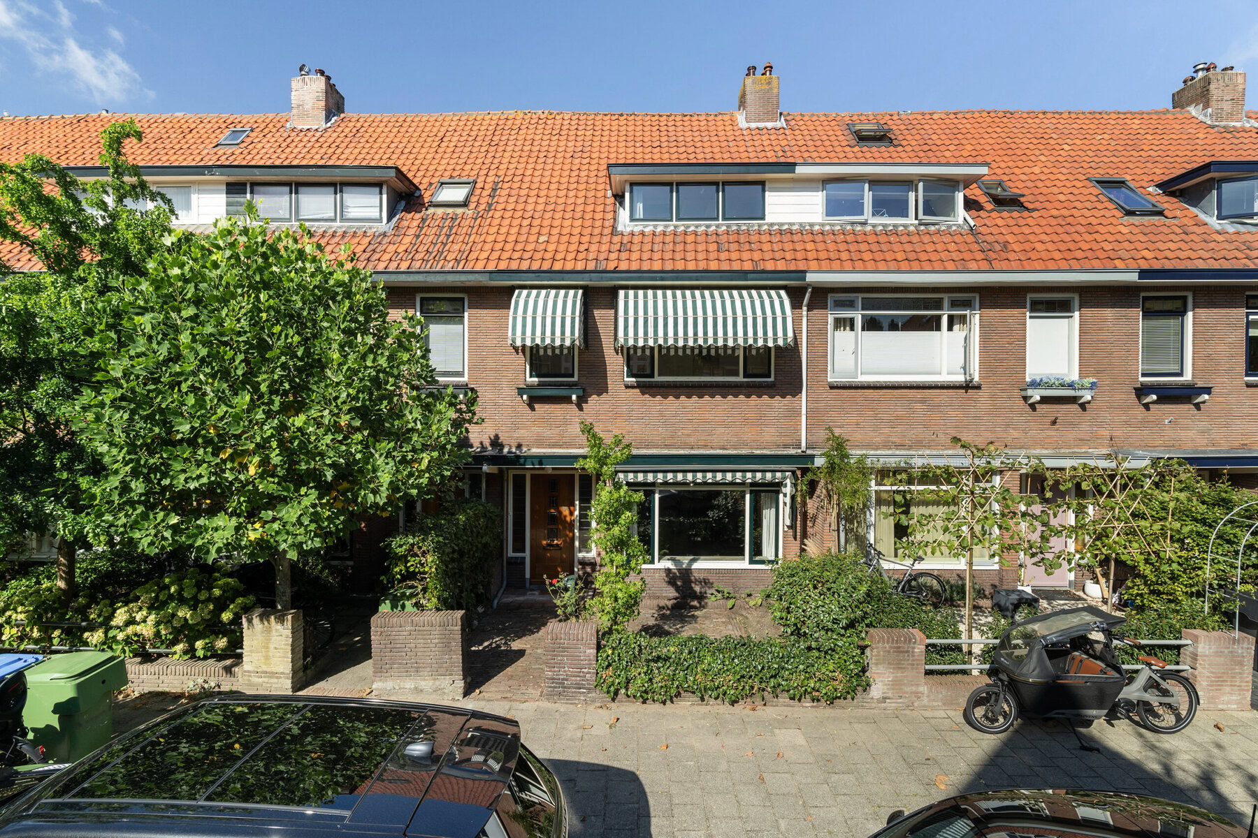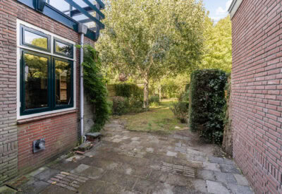 The property includes a well-kept front garden and an unexpectedly deep back garden of no less than 22 meters, facing northwest. Here, you can enjoy the sun well into the evening. The garden is green and private, with convenient rear access and a covered area, ideal for bicycles, firewood, or garden equipment.