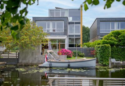 Those who soon live in this beautiful waterfront villa will experience the vibrancy of this residential location to the fullest. You will live here in a fantastic setting directly on the Vliet, with your own berth in the harbor for your boat. Large sliding doors provide access to the spacious wooden terrace by the water, from where you look out over the water where life unfolds in all its scents and colors all year round. Passing pleasure boats, swans, ducks, birds, you name it…. Water, everywhere you look. Here you live life your way. From this unique residential location, you can sail in a relaxed manner from your home to Vlietlanden, Leiden, the locks of Leidschendam, the Kagerplassen, and the Braassemermeer, among other places. Imagine being on vacation, but at home where everything is just a little bit better.